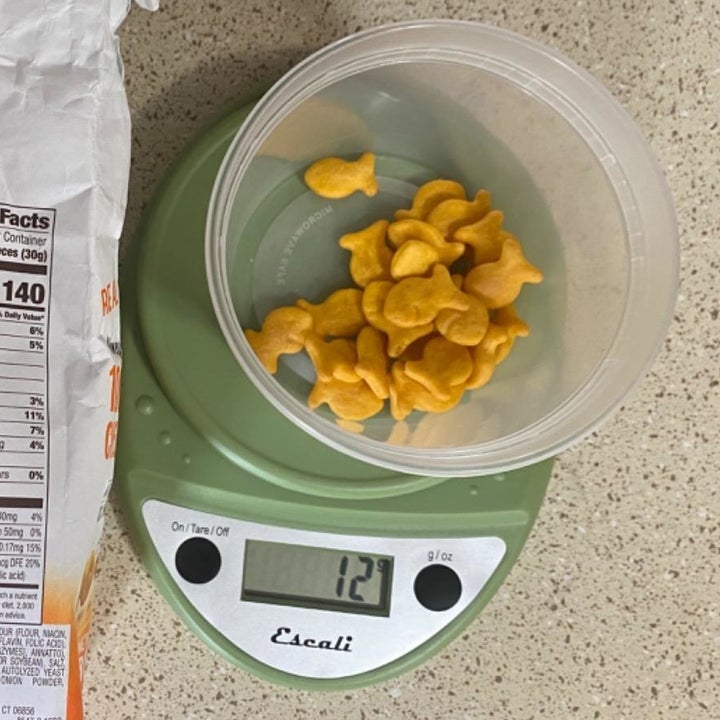 Promising review: "It is very light and compact, making it easy to store and bring around with yous. The accurateness is impressive. I take another scale which acquired me a lot of frustration as the grams change many times within seconds, just Escali's scale gives a definite number up to 1g accuracy. Nosotros weigh food to get accurate amount then this is a big plus for me. I also similar that the screen takes longer time to plow off equally I don't accept to worry about reweighing everything again while trying to get more food to add to the scale to accomplish my desired mass." —Shannon Lim Hui Yu